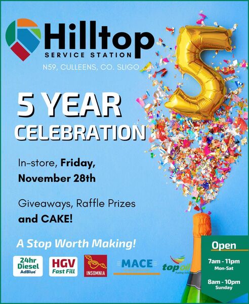 Hilltop Service Station are marking five years of serving our community this Friday, November 28.