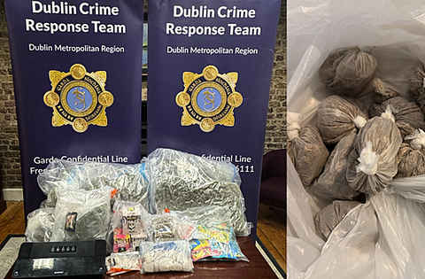 Gardaí from the Dublin Crime Response Team seized 12kg of cannabis herb, 400g of heroin, 8 bars of cannabis resin and cannabis oils/gels/jellies and vapes during the search.