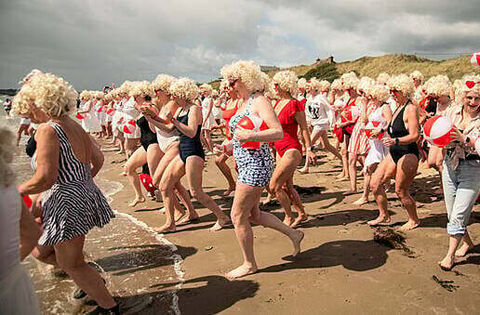 Sporting retro swimsuits and blonde wigs, swimmers dressed as the famous film star took the plunge at Balcarrick Beach in Donabate for Marilyn’s Mater Paddle.