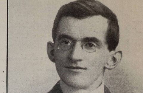 The small black and photograph clipped to the top right-hand corner of Intelligence on Ireland File number 5482 – held in the British National Archives –is slightly out of focus. It has faded somewhat with the passing of more than a century. A dark-haired man stands in front of a high stone wall, dressed neatly in a shirt, tie, and heavy overcoat. He peers stoically through a pair of round wire spectacles, which frame his rather youthful face.