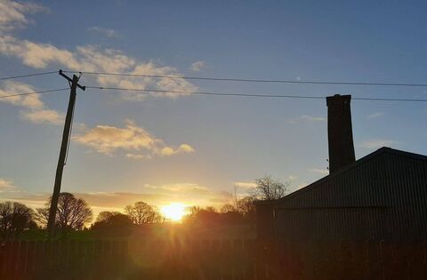 The local creamery's old steam chimney outlined against the setting sun, the only reminder that it was ever a platform for showmen. Picture: Pat McCarrick