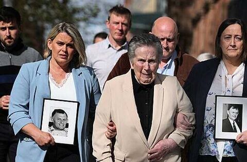 Stormont First Minister Michelle O’Neill and Sinn Féin president Mary Lou McDonald were among those who walked with the Brown family as they approached the court building.