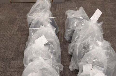 The NCA released an image of around a dozen evidence bags containing the seized cannabis.