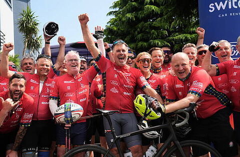 Celebrities and rugby stars complete cycle for MND research in Dublin