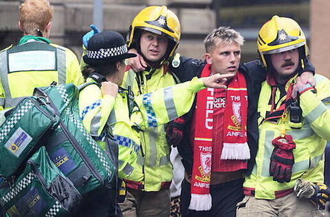 Photos of the father-of-one being carried by two firemen while wearing a Liverpool scarf were on the front pages of several national papers on Tuesday.