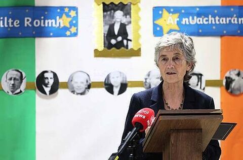 President Catherine Connolly visited an Irish language school in Dublin on her first official engagement.