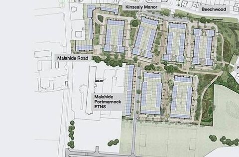 The scheme also provides for 229 car parking spaces, 345 bicycle parking spaces and four acres of dedicated public open space while in addition, 5.4 acres of greenbelt zoned lands are included to the south and south-east of the residential development area to accommodate a playing pitch.