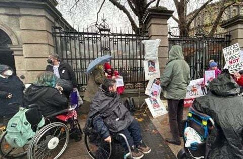 Dozens of disability activists have staged a protest outside Leinster House in Dublin in rejection of proposed welfare payment reform.