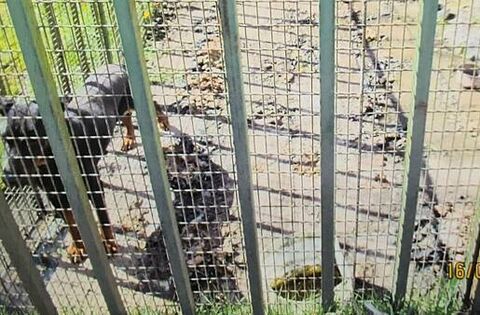 There was no one there when he arrived, and he found that the large Dobermann, weighing 45kg, was kept in a six-foot by six-foot cage with a makeshift kennel inside and a broken shelter.