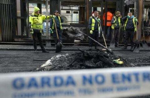 Dublin Fire Brigade said firefighters were continuing to dampen down smouldering vehicles in the city centre on Friday morning, adding a recovery and clean-up operation is underway.