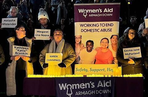 Banners bearing the names of the 25 women killed in the region since 2020 were held up during the event which was organised by Women’s Aid Armagh and Down and a moment of silence was held in their memory.
