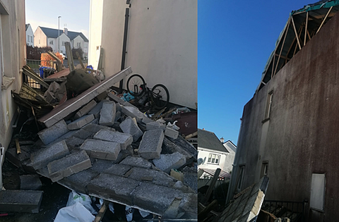 She went outside to discover a pile of bricks and slates on the ground after the gable end of their home had given way.