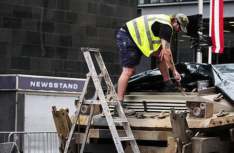 On Thursday, commuters, tourists and others in the city centre stood patiently as police and military vehicles raced up and down the streets and extras from the cast ran while loud bangs could be heard in the background and stage smoke filled the air.