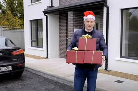 The accompanying video shows Mr Fitzpatrick delivering the festive packages to the lucky new homeowners.