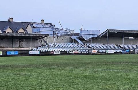 A section of a stand at Fitzgerald Park, Kilmallock GAA Club, in Co Limerick, was destroyed after Storm Éowyn ripped off a large section of its roof.