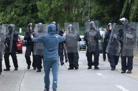 The violence escalated as bricks and fireworks were thrown at Garda officers and the fire service, and bins and mattresses were set alight.