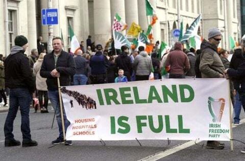 Some protesters carried Irish flags, as well as signs and banners with slogans such as “Ireland is full” and “Irish Lives Matter”.