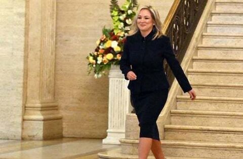 Around an hour before, Ms O’Neill had been applauded by supporters as she walked alone down the staircase which leads to Stormont’s Great Hall, on her way to her moment of history.