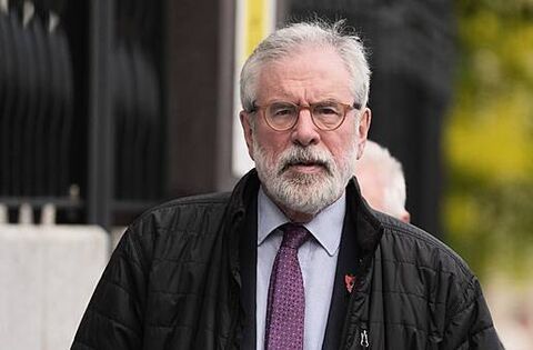 Gerry Adams arrives at High Court for bombings trial