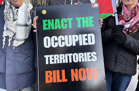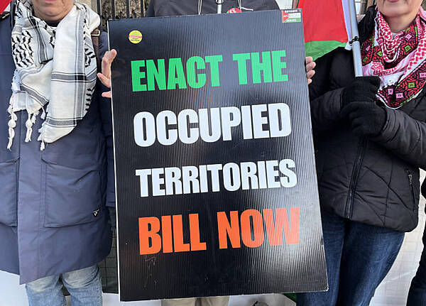 Demonstrators called for the urgent passing of the Occupied Territories Bill as they gathered in Molesworth Street outside an entrance to Leinster House on Wednesday evening.