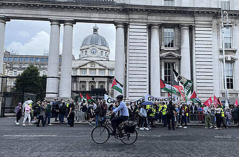 The demonstration, organised by the Ireland-Palestine Solidarity Campaign, began outside Government Buildings in Dublin on Tuesday evening where speeches were made.