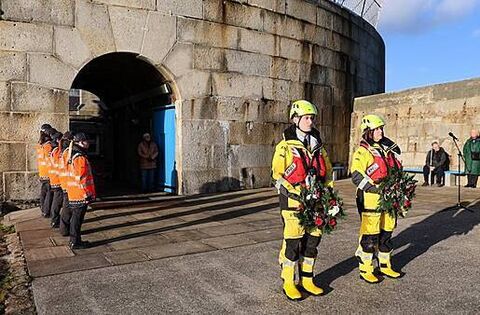 William Byrne performed the ‘Ballad of the Palme,’ before wreaths were placed at sea off the East Pier by the RNLI Dún Laoghaire Lifeboat.