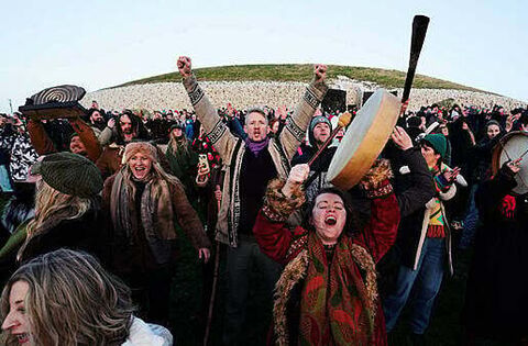 People celebrate the sun rising at Newgrange. Photo: Brian Lawless/PA