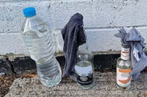 Seven glass and plastic bottles containing flammable liquid were discovered during the search, alongside empty glass bottles and rags.