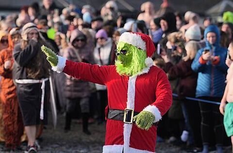In Bray, Co Wicklow, the “Grinch” led hardy crowds into the chilly Irish Sea waters to raise money for local causes.