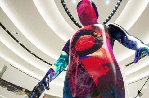The statue's patented LED and scanning technologies will bring The Giant to life, transforming it into the likeness of a real person.