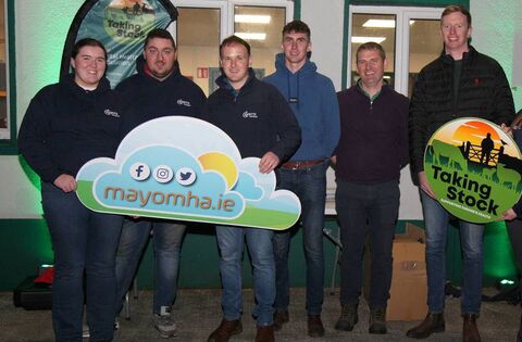 Pictured at the 'Taking Stock' event at Balla Mart were, from left: Aoife Gibbons, Mayo Macra na Feirme Chairperson; James McDonnell, Castlebar Macra; Daniel Conway, Mayo Macra Secretary; Conor O'Rourke, Mayo Macra PRO and Claremorris Macra Chairperson; Michael Rowland, Mayo North East LEADER Parnership; Patrick McCormack, Department of Agriculture; Anna Cunningham, Mayo Mental Health Association's Student Mental Health Promotion Officer). Picture: Trish Forde