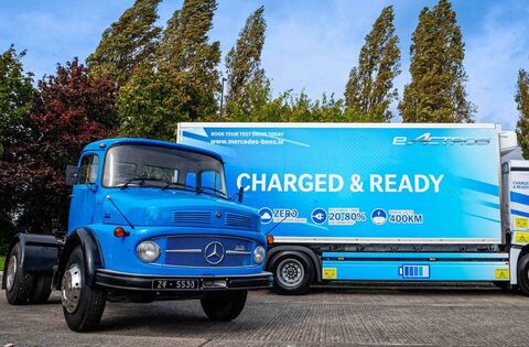 Pictured alongside the eActros – with all of its futuristic technology, safety elements, specifications, and driver comfort features - is a classic 1418 model Mercedes-Benz 1970s generation ‘bull nose’ unit, then a common sight on Irish roads and the premier choice of organisations whose heavy workload called for a heavy-duty truck capable of handling the rough with the smooth.