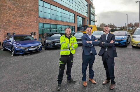 AA Patrol Brian Scanlon, Chris Lowry, Head of Warranty and Customer Care for Volkswagen Group Ireland, and Emmet Wrafter, Head of Business Services for the AA Ireland pictured at Volkswagen Group Ireland’s Liffey Valley headquarters.