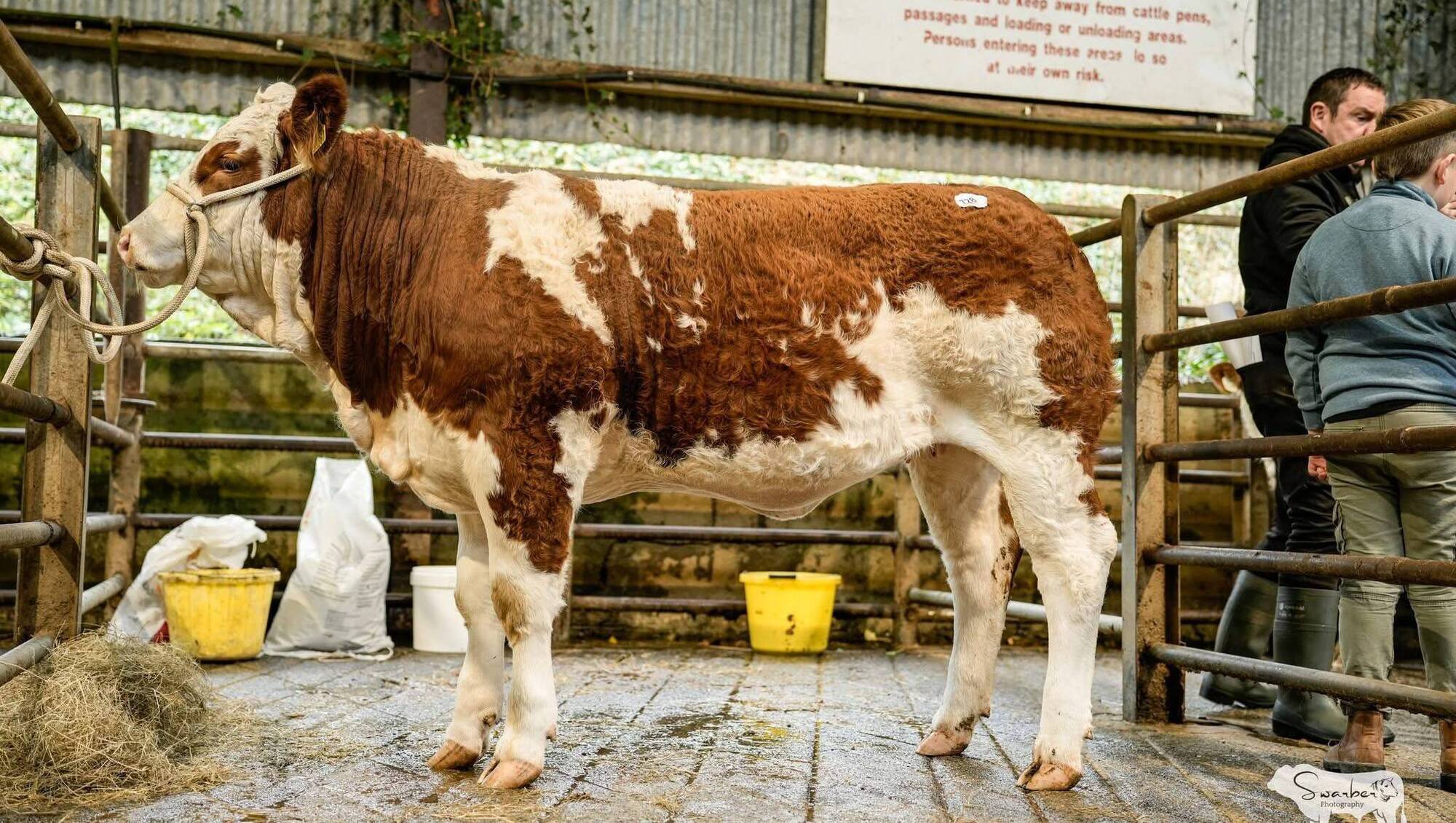 I had the top priced maiden heifer on the day; a February 2024 born three quarter SiM X heifer weighing 625 kgs which sold to local man Paul Cryan for €4450. I also sold an April 24 born Sim X animal weighing 510 kgs for €3,800.” David commented that his heifers at this year's sale were on average 5kgs heavier than his stock last year but the average price increased by over €1,200. This he felt is indicative of the current buoyant trade for all types of livestock but he said there is a huge demand for good quality Simmental heifers today. The specialist incalf producers are keen for the heavier more powerful heifers while farmers are interested and great customers for the lighter quality ones and are willing to pay a premium price.