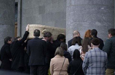 A photo of Ms McNally was placed on her wicker coffin at the top of the church, alongside some flowers.