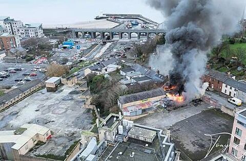 Firefighters from Balbriggan, Skerries and Swords along with a turntable ladder and water tanker are on scene at a fire involving vacant shops.