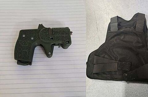 As he was being searched, a .22 calibre pistol fell from being concealed in the vest.