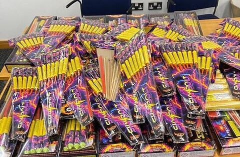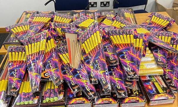 The counterfeit items seized include electronic goods, fireworks, and designer clothes.