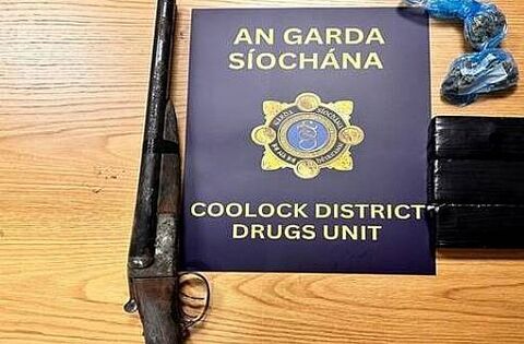 A double-barrel shotgun and 0.5kg of suspected cocaine, worth an estimated €35,000 was seized. Suspected cannabis worth around €250 was also seized.