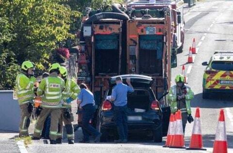 There were two staff and a driver working on the vehicle at the time. It’s understood that workers were collecting local bins when the incident occurred and were not standing at the back of the truck at the time. They are said to have had a lucky escape.