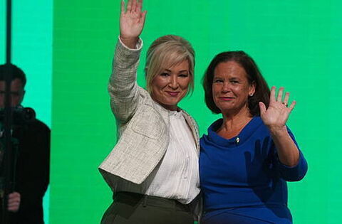 Mary Lou McDonald celebrating with Sinn Fein councillor Janice Boylan