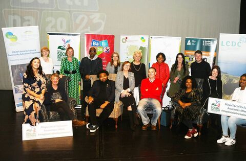 Seminar on racism 'Cairdeas le Chéile' in Ballina Arts Center with Sheila Garvin Ballina 2023, Anne-Marie Flynn Ballina 2023, Dr John Mulloy Speaker/Panel Facilitator, Bridie McAndrew Karen Community Garden Manager, Fath Hamid Karen Community Garden Volunteer, Martin Angolo Panellist Speaker, Comedian/Writer, Rita Hopkins Mayo North East SICAP, Mags Downey Martin CEO Ballina Chamber, Cllr Annie May Reape Leas Cathaoirleach Ballina MD, Paddy Maughan Panellist Speaker Mayo North East SICAP, Sharon Murphy Speaker, Anne Ronayne Community and Engagement Section Mayo County Council, Emmanuela Ubah Panellist Speaker, Cllr Jarlath Munnelly, Deirdre Finnerty Speaker Head of Community and Engagement Section Mayo County Council, Celeste Khosa Panellist Speaker South West Mayo Development Company SICAP. Picture: John O'Grady.