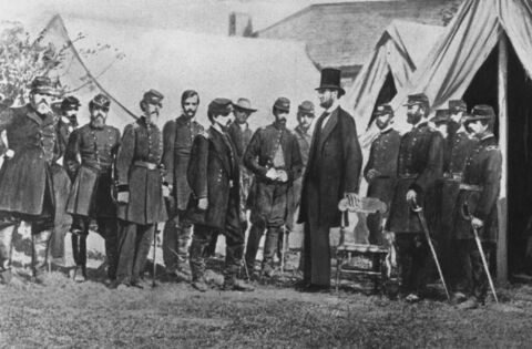 President Abraham Lincoln visiting soldiers encamped at the Civil War battlefield of Antietam in Maryland in 1962 It was one of the bloodiest in the whole American Civil War. Picture: Rischgitz/Getty Images