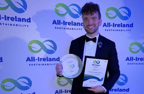 Luke Gibbons, a 28-year-old PhD candidate and Irish Research Council Scholar from Claremorris, County Mayo, has been honoured with the prestigious All Ireland Young Sustainability Change Maker of the Year Award at a Gala Ball held on Thursday, October 24th, at the La Mon Hotel and Country Club in Belfast.
