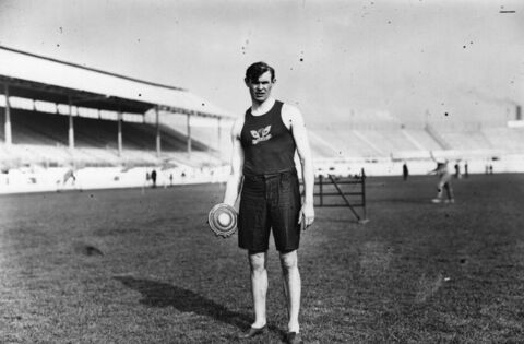 Martin Sheridan in practice for the Discus event at the 1908 London Olympics. He went on to win the Gold Medal, as he had done at the 1904 and 1906 Olympics, with a then Olympic record of 40.89 metres. Picture: Topical Press Agency/Getty Images