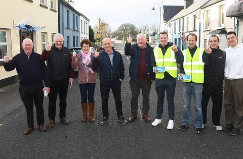 Fine Gael Cllr Mark Duffy, fourth from right, on the campaign trail Bonniconlon with, from left: Michael Noone, John McCormack, Margaret Devine, John Fox, Cllr John O'Hara, John Duffy, Joshua Duffy and Sam Duffy. Picture: John O'Grady.