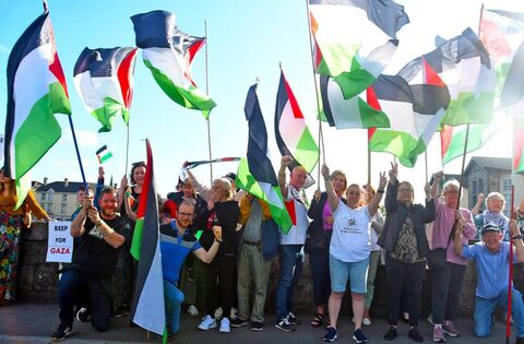 Some of those who took part in the Ballina Bridgil at the Ham Bridge in Ballina last Friday evening in support of the people of Palestine. The event was organised by Derek Graham and Jenny Graham. Picture: John O'Grady