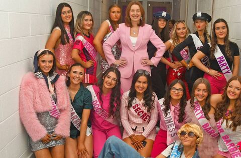 St Mary's Secondary School in Ballina transformed into a pink paradise - complete with a special pink-hued floodlit entrance - for the sell-out run of its spectacular musical, .