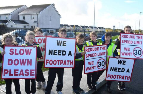 Students from Culleens National School gathered on the Killala Road for a roadside protest at lunchtime last Thursday.