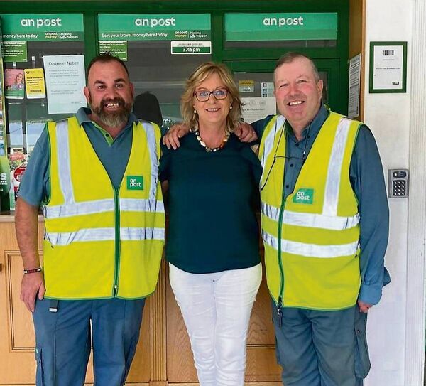 Enniscrone postmen Máirtin Flannery and Francis Devaney pictured with postmistress Dawn Burrows.